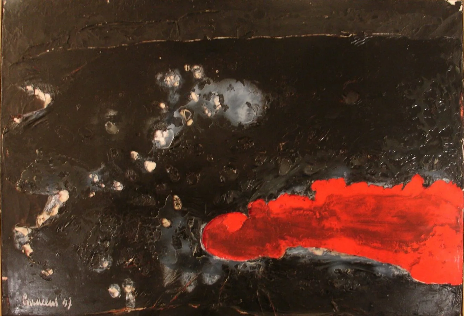 Opere tra il 1953 e il 1956. In questo periodo è a contatto con il mondo cinematografico come scenografo e produttore di documentari, in cui sperimenta la musica elettronica. Queste passioni vengono trasmesse in questi dipinti. Qui passa dal linearismo calligrafico all’allusione ad un materismo, che si fa sempre più evidente. I piani cromatici degli "Scherzi" prendono corpo, ma è un rilievo ancora simulato nella tecnica pittorica.