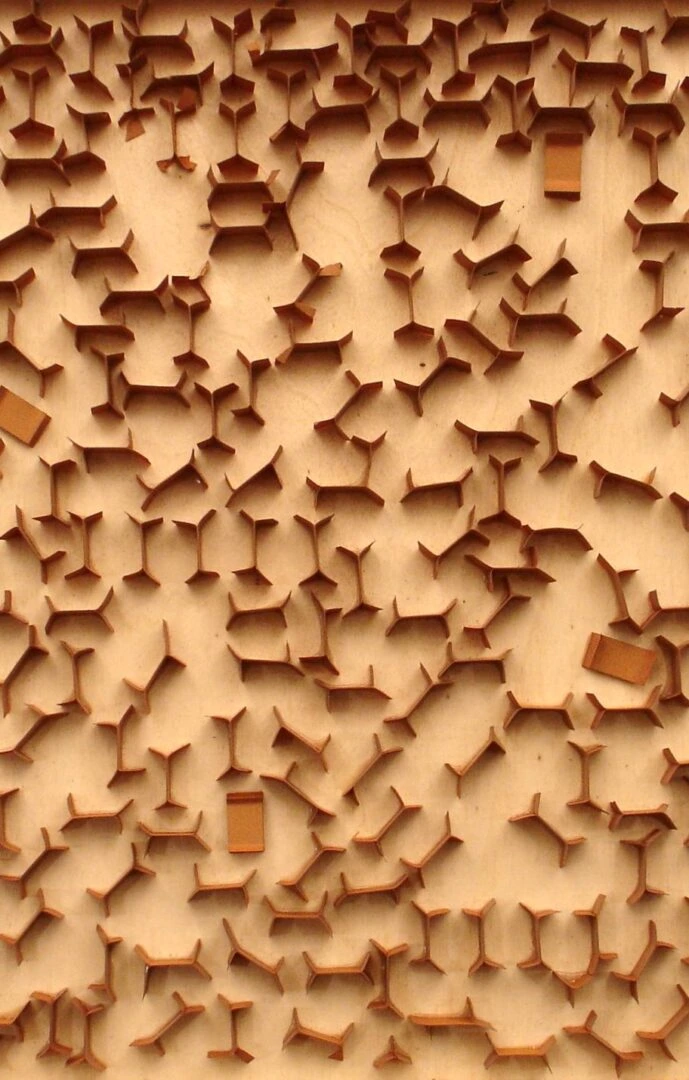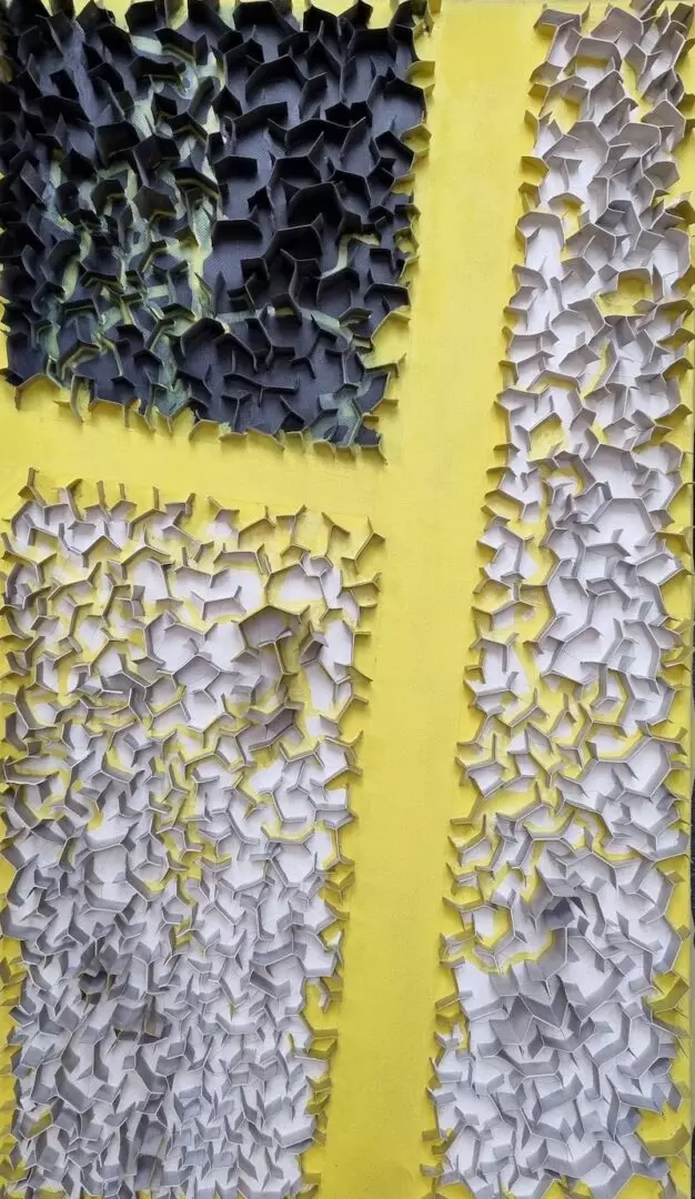 Opere tra il 1965 e il 1969. Sfruttano elementi industriali di plastica, prestampati, ma sperimenta anche con legno e carta, al fine di animare lo spazio a ridosso della superficie. È un altro elemento, come le mappe, osservabile dall’alto, più organizzato, più architettonico, e ancora una volta spazio percorribile come un filo, un filo “d’Arianna”, che attraversa un passaggio che ricorda le grandi megalopoli. Spesso le chiama anche "Antistrutture" in quanto il labirinto, più che una struttura, è il suo contrario.